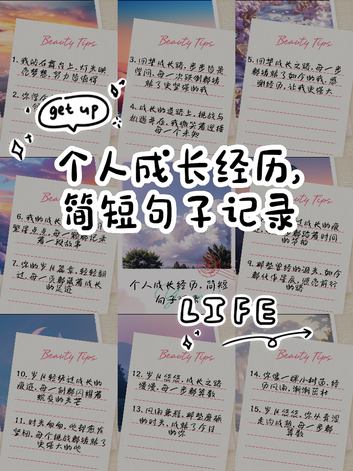 用成长造句如下1在逆境中,人要学会在痛苦中坚强,在挫折中成长,而不是在顺境中满足,在舒适中安逸2成长就像老鹰练习飞翔,关键在于持之以恒的毅力和决心3每个人的成长过程都是一部充满挑战与挫折的历史,但正是这些挑战使得我们更加成熟和坚强4真正的成长并非来自舒适的安逸区,而是。