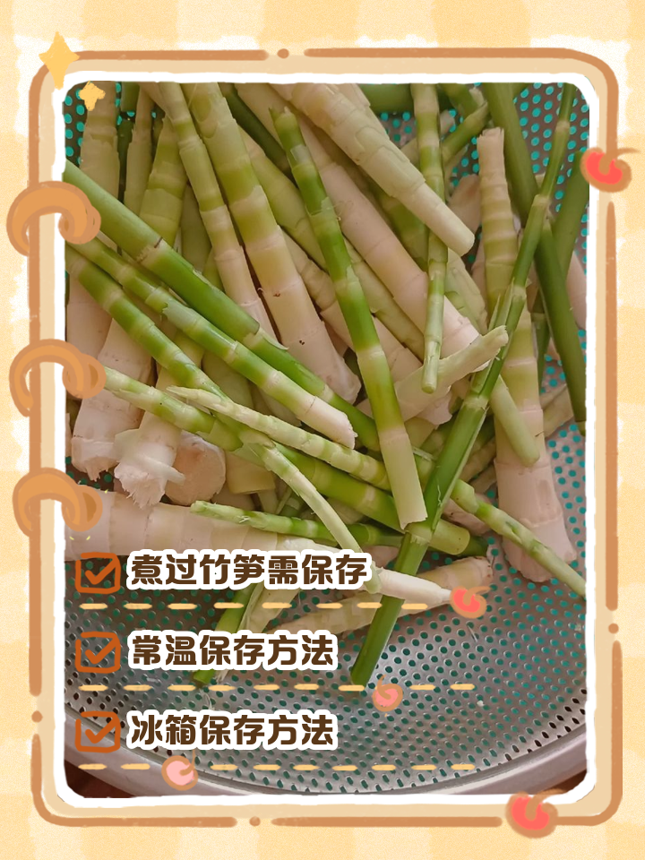 保存方法 浸泡好的竹笋捞出后控干水分,可以用保鲜袋分别装好,放入冰箱冷藏保存或冷冻保存 冷冻保存的竹笋在食用时无需提前化冻,直接放入冷水中泡泡,去掉冰碴即可烹饪做法 竹笋处理并保存好后,可以根据个人喜好进行烹饪,如炒炖煮汤等 如果急着使用,也可以将竹笋切好后,再用开水焯一;新鲜竹笋的处理方法和做法如下处理方法 剥壳从新鲜竹笋的根部开始,一层一层地剥除外壳尖部较嫩的外壳可以不用去掉 清洗剥除所有外壳后,用清水将竹笋冲洗干净 切段用刀将竹笋切成两段,如果锅足够大,也可以不切断做法 煮制将切断的竹笋放入锅中,加入适量的水,开火,加盖。