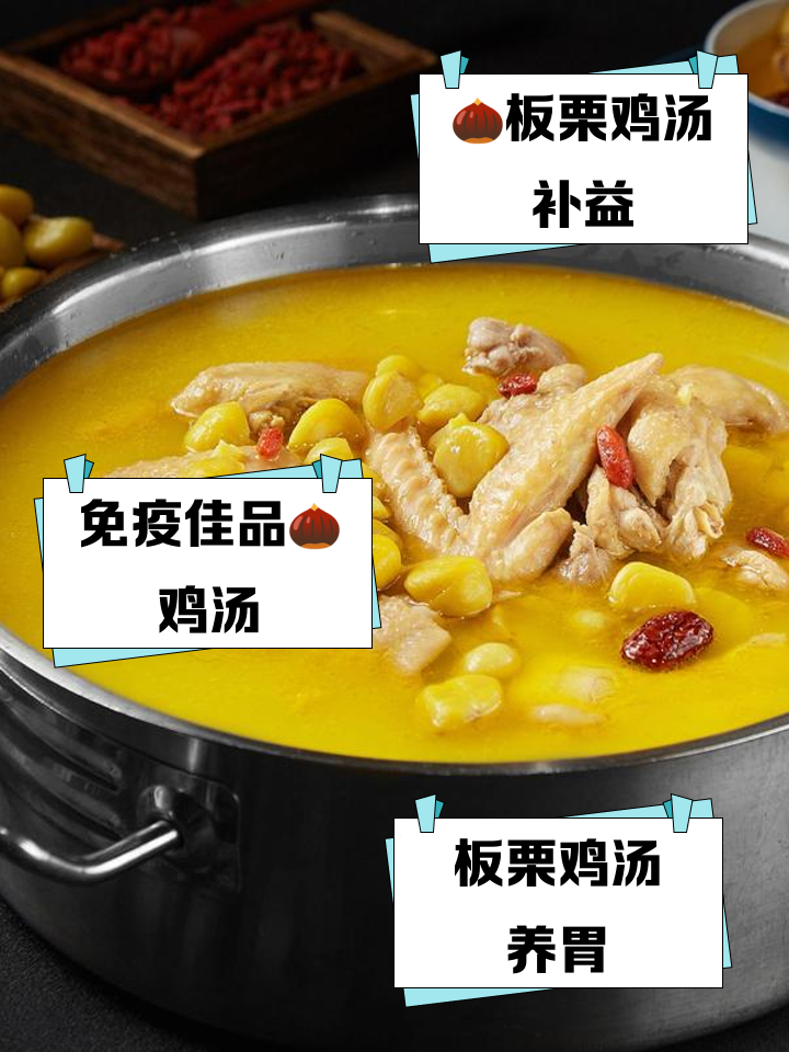 板栗鸡汤鸡肉富含蛋白质,与板栗一起煲汤,不仅口感醇厚,还有补气养血的功效如果想要更丰富的口感,可以加入一些玉竹或者五指毛桃板栗鸽子汤鸽子肉细嫩,富含营养,与板栗羊肚菌一起煲汤,可以健脾益气,增强抵抗力板栗乌鸡汤乌鸡具有滋补养生的作用,与板栗搭配,更能补血养颜,适合女性在冬季。