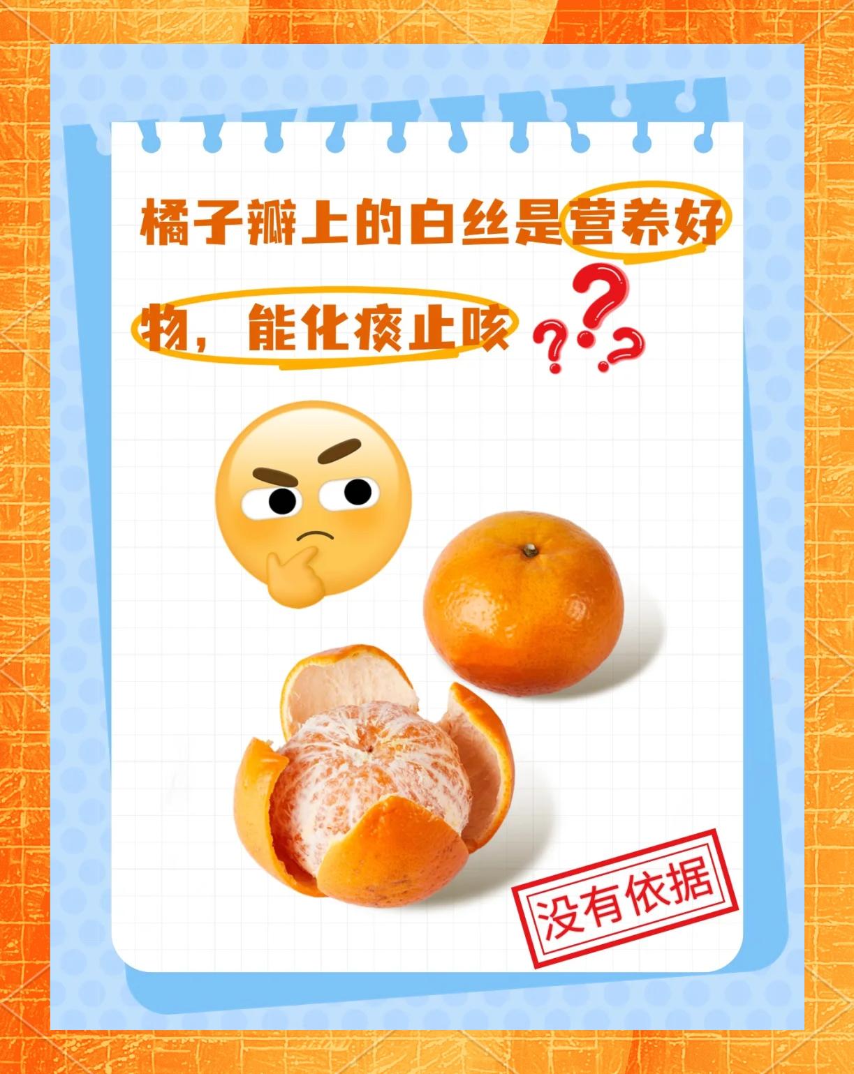 4、具有抗氧化作用,能够帮助清除体内自由基,减少氧化损伤,对预防心血管疾病等有积极意义从药用价值来讲,在传统医学里,橘络被认为有通络化痰顺气活血的功效,对咳嗽痰多胸胁作痛等有一定辅助治疗作用所以,吃橘子时不用特意将白丝去除干净,连同橘络一起食用,能让营养摄入更全面;1 橘子内部那些交织的白色丝状物称为橘络这些橘络在橘子生长过程中扮演着至关重要的角色,它们是橘子内部水分与营养物质的运输通道保留橘络食用不仅能够丰富饮食,还对健康大有裨益因此,在享用橘子时,无需将橘络彻底去除,而是应一同食用2 注意事项尽管橘子营养价值高,但不宜过量食用,否则;去火橘子性质温和,吃多了容易上火,而橘络有去火的功效,吃橘子时连同橘络一起吃不容易上火促消化橘络含有较为丰富的膳食纤维成分,一起食用可以增加肠道内容物,起到润肠通便促进消化的作用橘子白丝还可以泡水喝,若觉得味道寡淡,可以搭配冰糖一起泡水喝,改善味道并增进营养。