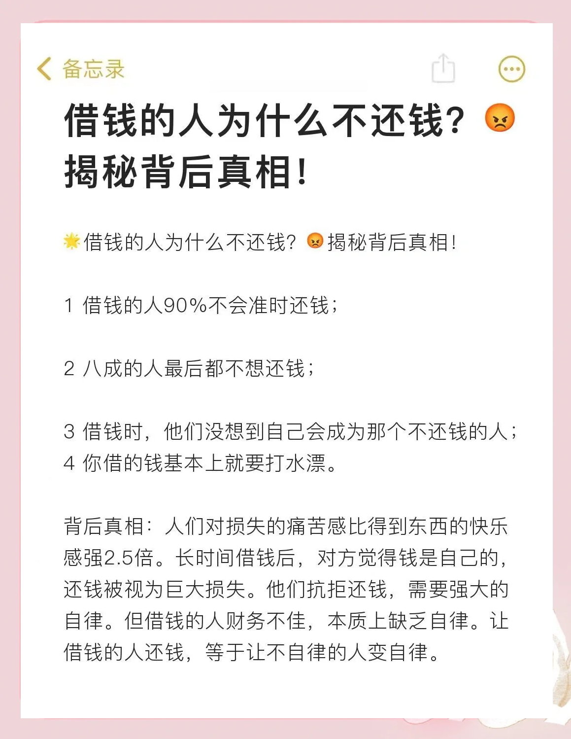 找借钱不还的人要钱确实难,但用对方法能提高成功率一要钱难的三大原因 1 人情束缚多数人借钱给亲友时碍于面子,没留借条或聊天记录,撕破脸怕伤感情 2 证据不足口头约定或转账备注模糊,对方抵赖时缺乏法律认可的凭证 3 对方耍赖有人用“过两天还”“最近手头紧”等借口拖延。