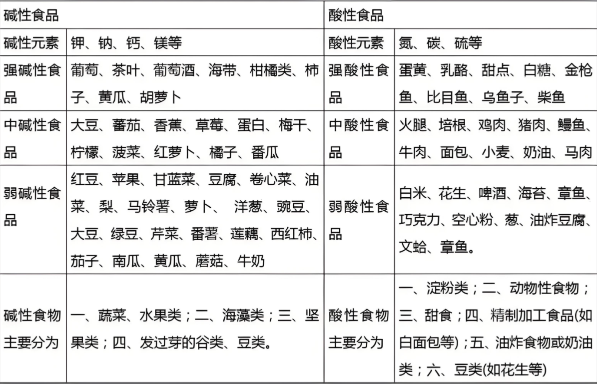 1一般常见的酸性食物是指肉食类,如鱼肉鸡肉猪肉羊肉牛肉等以及巧克力花生啤酒海苔葱空心粉白糖蛋黄乳酪甜点米面油等都属于酸性食物2而碱性食物大多是指蔬菜水果海带豆类茶叶坚果等经体内代谢后以产生碱性物质为主的食物如香蕉李子鲜牛奶谷物酵母。