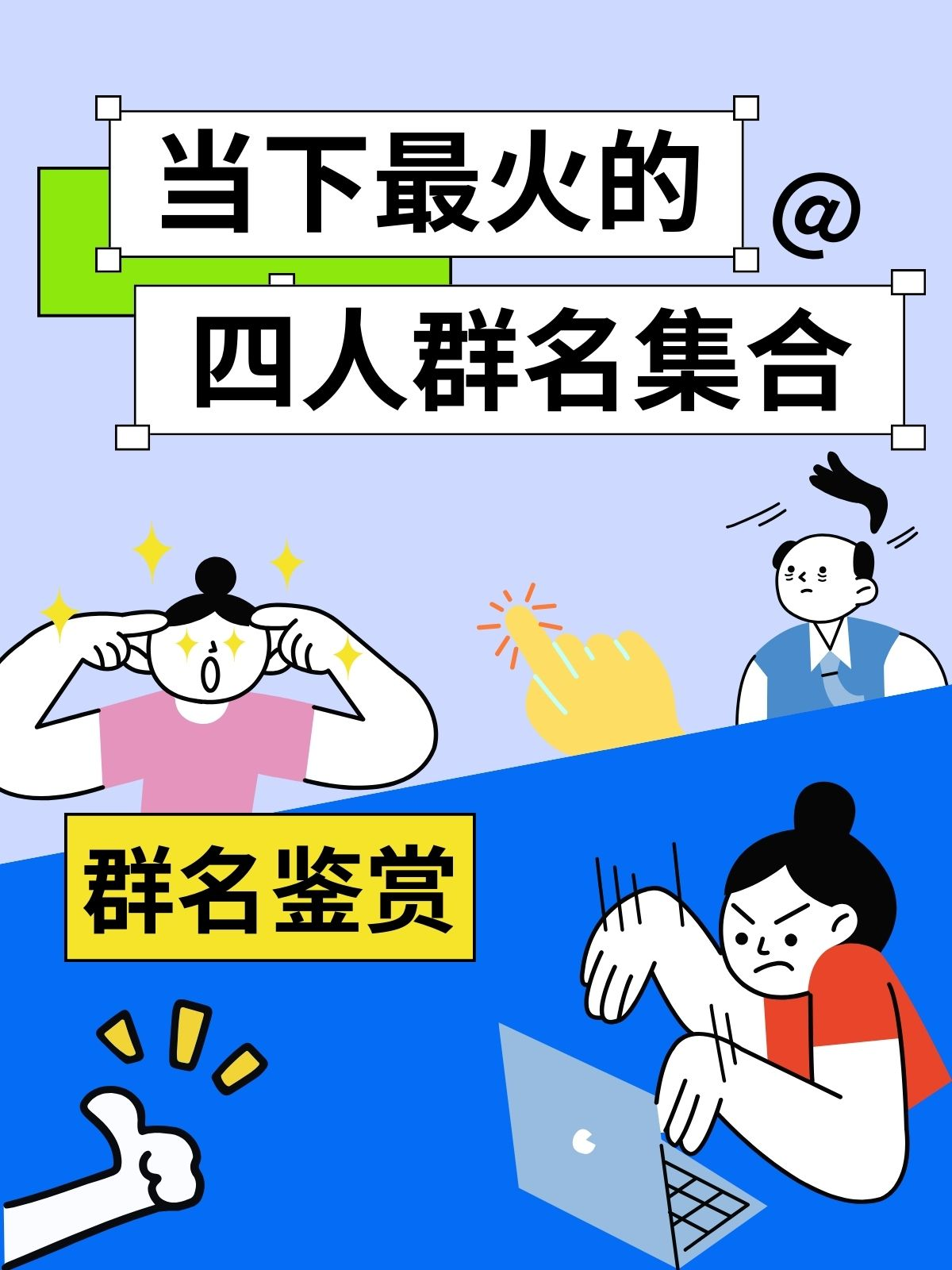 幽默四个人群名包括如下1四个小神仙这个名字带有一种神秘和幽默感,让人联想到四个无忧无虑自由自在的朋友2欢乐四人组这个名字直接表达了群成员之间的欢乐和愉悦,适合关系亲密经常一起开心玩耍的朋友3逗逼四人行这个名字有一种自嘲和幽默感,适合喜欢互相调侃搞笑的朋友4。