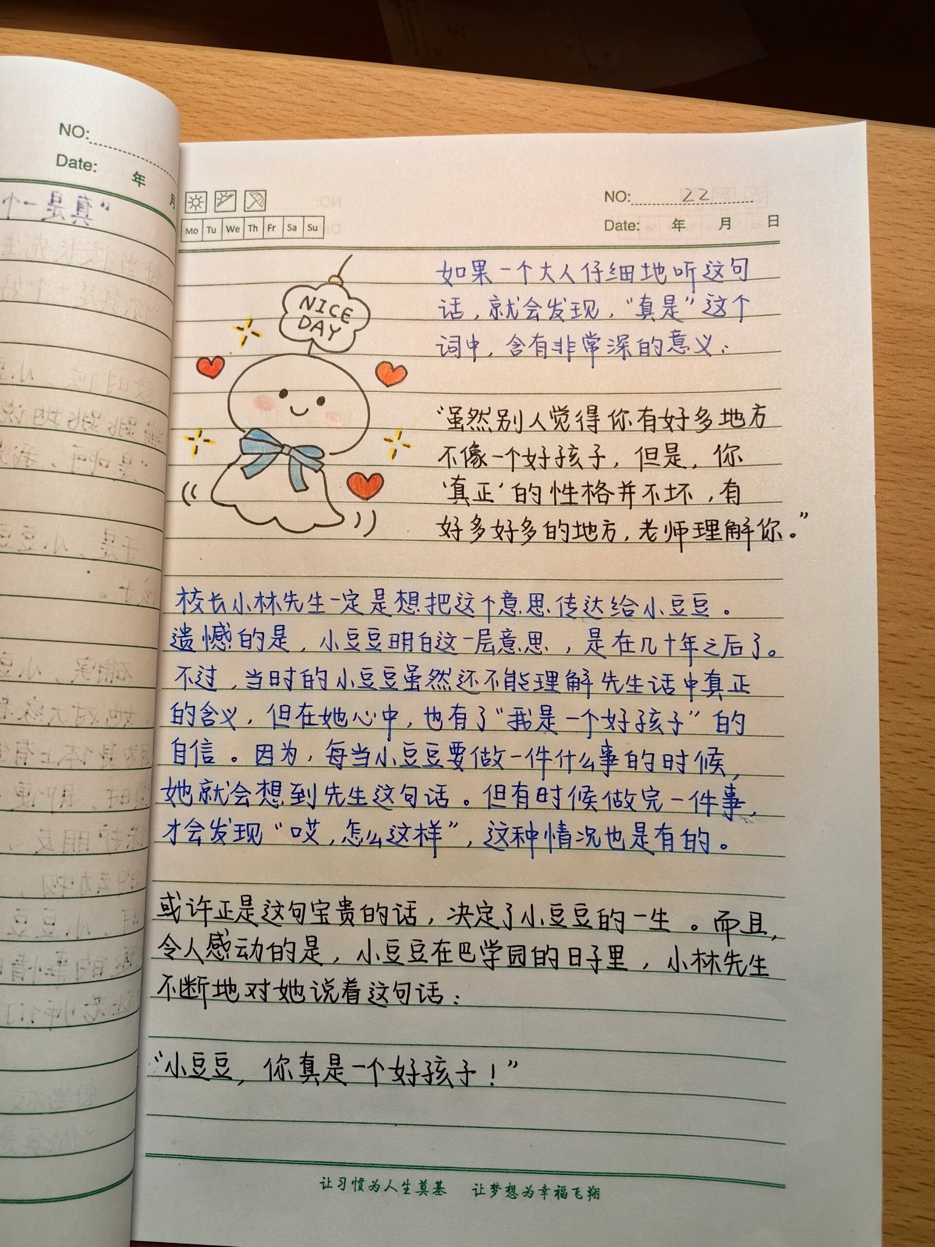 1、窗边的小豆豆这本书,以其细腻的笔触和深刻的寓意,让我在阅读过程中深受触动这本书不仅讲述了一个小女孩在特殊学校巴学园的成长故事,更深刻地反映了教育的真谛和人性的美好一教育的真谛在于引导和发现 小豆豆因淘气被原学校退学后,来到了巴学园在这里,她遇到了慈祥的小林校长,一个懂得欣赏和引导孩子的人。