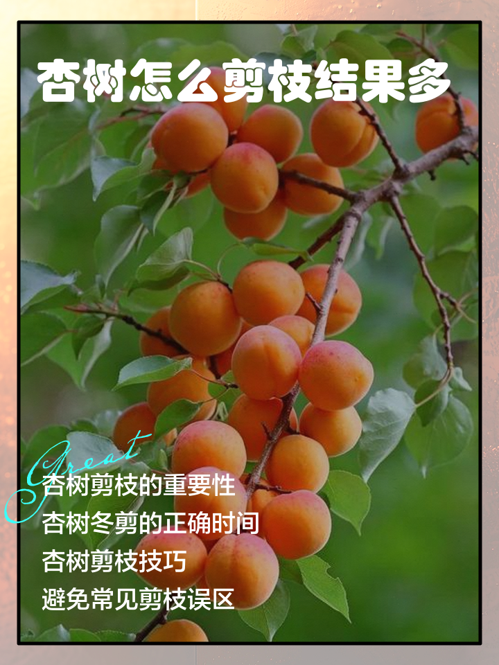 杏树冬季剪枝最好具体原因如下生长速度影响冬季温度低,杏树的生长速度慢,此时剪枝对它造成的伤害相对较小,有利于树体恢复枝条管理对于生长旺盛结果率较高的杏树,冬季剪枝可以根据枝条的长短和树冠各个部位的情况,合理决定剪掉的枝条数量,有助于调整树形,提高果实产量和质量肥水管理剪枝;对于成年杏树可以在每年的八九月份进行修剪这个时间段主要是去掉上强枝和外强枝,以减少冬天修剪的工作量修剪的目的是为了调整树形,促进枝条的合理分布,提高光照利用率如果八九月份没有及时进行修剪,那么冬天落完叶后也可以开始修剪此时修剪可以进一步调整树形,去除病弱枝,为来年的生长打下基础;通常最佳修剪时间为5月至6月,此时期可保留角度适宜的枝干和枝梢,剪除徒长和多余的枝条6月中下旬亦是良好的修剪时期,有利于杏树的开花和结果冬季,杏树进入休眠期,生命活动较为静止,修剪时对植株的伤害最小,因此可以在12月中旬进行一次较重的修剪2 杏树的生长习性和土壤要求 杏树是一种落叶;杏树最佳的剪枝时间是冬季休眠期或早春时节以下是详细解释1 冬季休眠期剪枝 冬季是杏树休眠的时候,此时剪枝对树体的生长影响较小休眠期的杏树,枝条组织处于相对静息状态,修剪造成的伤口在来年春季树液流动时能够得到较好的愈合,且不容易受到病虫害的侵扰此外,冬剪有助于调整树势,平衡营养生长。