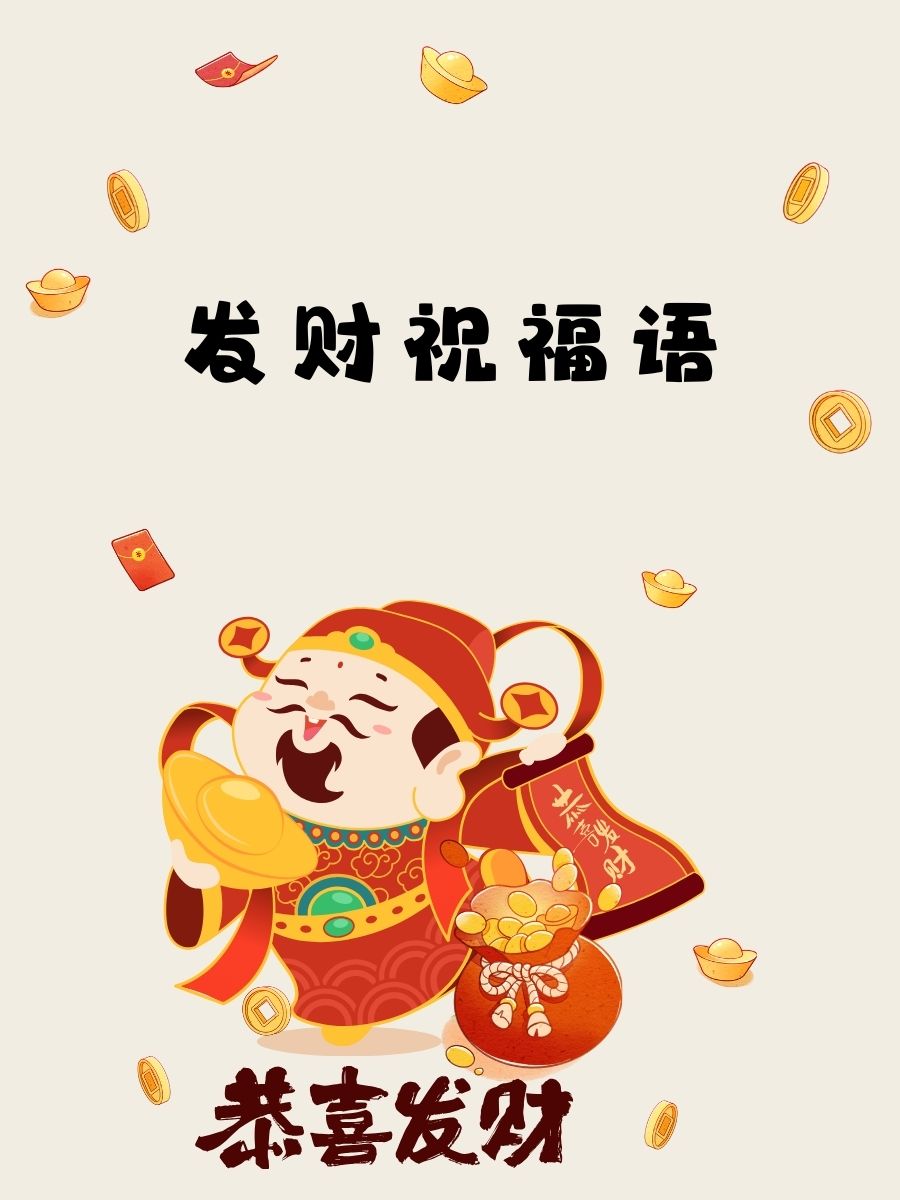 6、最受欢迎的30个祝福发财成语,日常和节日都能用不同场合适配不同祝福语效果最佳,比如“财源广进”适合生意伙伴,“金玉满堂”更适合家庭祝福整理了三大类高频词一财富直通车类1 财源广进商超开业常用2 招财进宝实体店门贴高频词3 日进斗金微商朋友圈常见4 腰缠万贯。