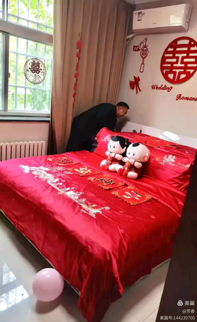 其中,“新人新事,新被新床”是指新婚夫妇要用新的床铺和新的棉被,寓意着他们的婚姻是全新的开始“新婚佳偶,永结同心”是说祝愿新婚夫妇永远相爱相守心心相印最后一句“早生贵子,福满家庭”则是希望他们能够早日生下贵子,为家庭带来更多的幸福和欢乐 3铺床铺床,喜气洋洋先铺四角,再铺中央夫妻恩爱。