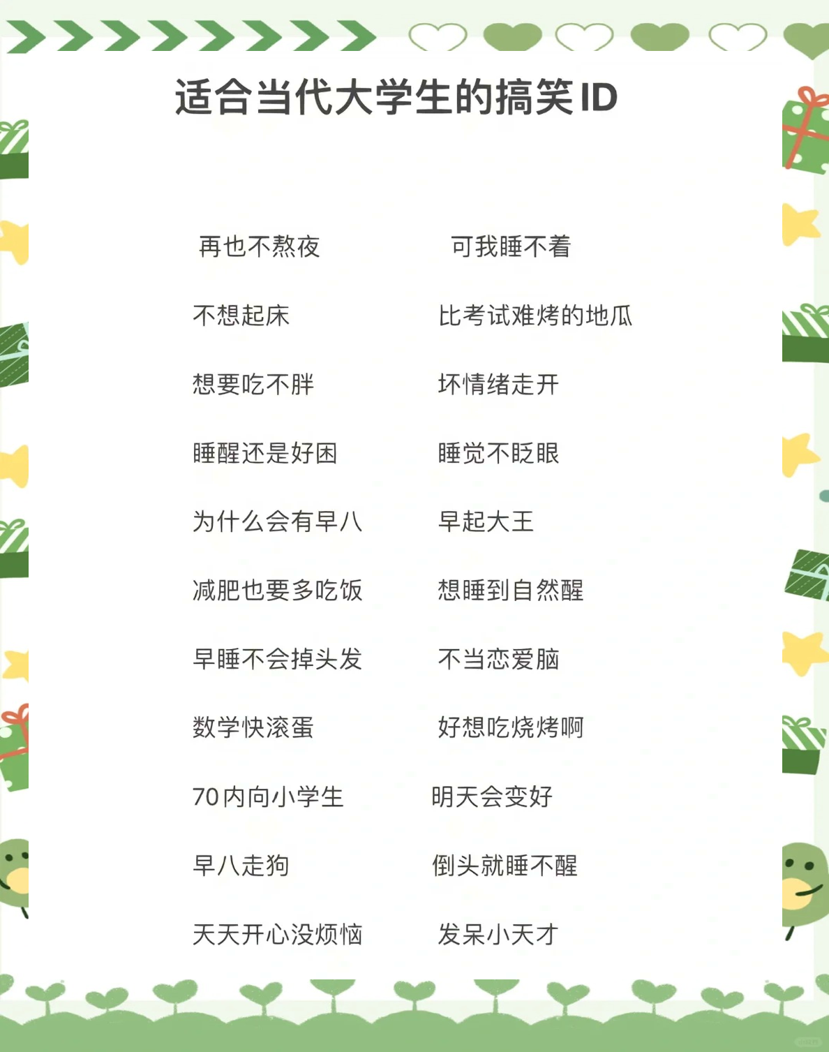 以下是一些游戏搞笑名字的建议小时候可二了这个名字带有自嘲和幽默感,适合喜欢搞笑的玩家上帝也卖萌结合了“上帝”和“卖萌”两个看似不搭的元素,形成有趣的反差来包辣条压压惊以辣条这一常见小零食为引子,增添了一丝俏皮和风趣坐超人撞飞机想象丰富,将超人和飞机两个元素结合,营造。