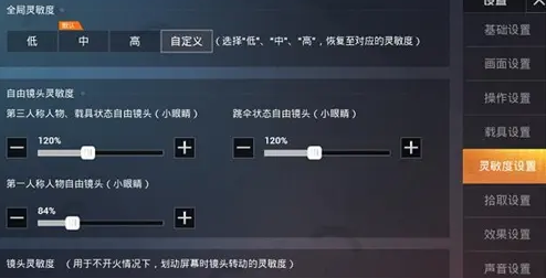 14、要将绝地求生的灵敏度调整至最稳状态,可以参考以下设置方法一镜头灵敏度 第三人称人物车辆状态自由镜头设置为120% 跳伞状态自由镜头同样设置为120% 第一人称人物自由镜头建议设置为84%二开火镜头灵敏度 第三人称不开镜设置为133% 第一人称不开镜设置为104% 红点全息。
