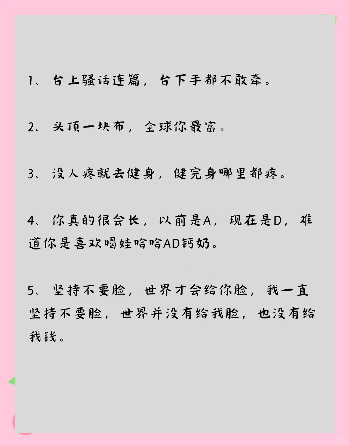其实我们从小开始就一直在看各种各样的笑话,这些笑话能带给人开心的情绪,那我们接下来就一起看看有什么笑话叭 笑话大全笑到肚子疼超级爆笑 1同学一见面就跟我诉苦,说他前段时间总盗汗,一睡着就出汗,医院检查花了好几百,后来又找了个老中医开了十来副中药,喝了也不管用,而且一天比一天厉害我问“后来呢。