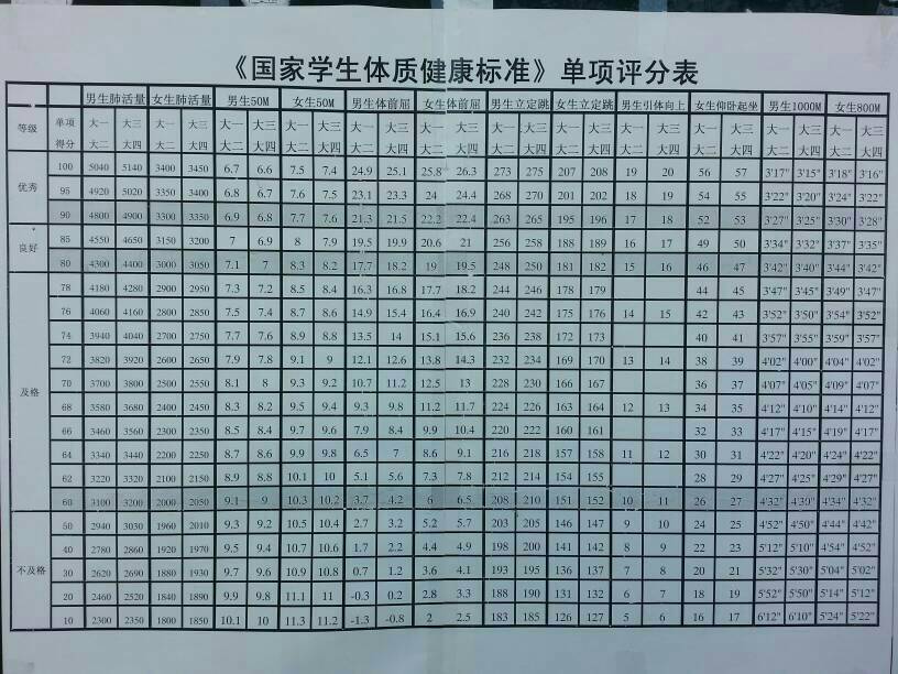 中考800米跑的评分标准基于完成时间,具体如下满分为100分,要求完成800米跑的时间在3分10秒以内达到95分的选手需控制在3分18秒内,90分线则设在3分25秒75分及以上的成绩,时间限制分别为3分32秒3分39秒3分47秒低于70分的选手,用时分别为3分57秒4分08秒和4分20秒对于男子。