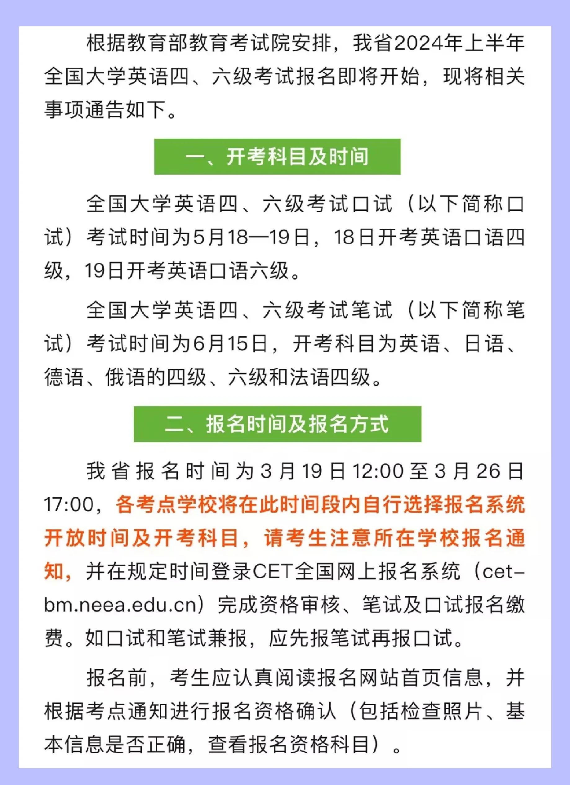 3、四级笔试考试时间为125分钟,卷面分值为710分,题型包括写作听力理解阅读理解和翻译六级笔试考试时间为130分钟,卷面分值同样为710分,题型与四级类似,但难度有所增加示例图片注此图片为示例,实际真题及解析需通过正规渠道获取三备考建议熟悉考试内容和题型考生应仔细研究历年真题,了解;英语六级考试是不设及格线的,满分成绩为710分,主要考试对象为高等学校修完大学英语四级的本科生,大学英语考试每年为我国大学生的英语水平提供客观的描述由于大学英语六级考试广泛采用现代教育统计方法,分数经过等值处理,因此保持历年考试的分数意义不变因此,一些独特的教学法开始产生,六级培训,分项授课;1考试对象限制在普通高校内部四年制或以上根据教育大纲修完大学英语四级的在校大学本科生或研究生2同等程度的大专生或硕士研究生经所在学校同意,可在本校报名参加考试3同等程度的夜大或函授大学学生经所在学校同意,可在本校报名参加考试从2007年1月的考试开始,大学英语四六级考试将不;一了解题型和分值 大学英语四六级考试主要分为四个部分听力部分阅读部分翻译和写作其中听力和阅读占比最多,分值也是最多四六级总分都是710分,听力和阅读都是248分所以这两部分很重要,当然翻译和写作也不能放松所以要想顺利通过四六级,就要针对性的下功夫四六级报名 二备考 英语;130%左右 大学英语六级通过率一般在30%左右对于英语六级的通过率一般说要比四级要难一些,词汇量比四级多,考试时间也是比较紧的,备考英语六级的时候需要考生付出更多的努力才能通过考试六级平均四五个本科生里面有一个能通过但是四六级通过率并不固定,但合格的分数线是固定在425分的,具体得看。