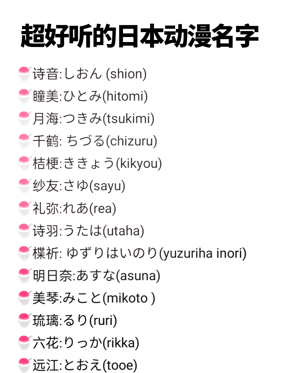 以下是几个常见的日本女生名字及其含义美咲Misaki,意为“美丽绽放”结衣Yui,意为“联结的衣裳”莉子Riko,意为“聪明的孩子”阳菜Hina,意为“阳光下的蔬菜”或“阳光女孩”优奈Yuna,意为“温柔的花”等 日本女生的名字通常以优雅温柔或自然意象为主,父母在;石田 比较可爱的姓氏绫小路,风间,菊池,樱井,星野,花轮,佐佐木,千叶比较可爱的女性名字,结衣雪奈千雪美雪,奈美,美树,绘梨衣,真弓,纪香,薰,琉璃 名字这个东西,看个人喜好的,我个人比较喜欢的日本女生名字西九条沙罗,星野真弓,绫小路薰,名川千梅木之本樱,新垣结衣。