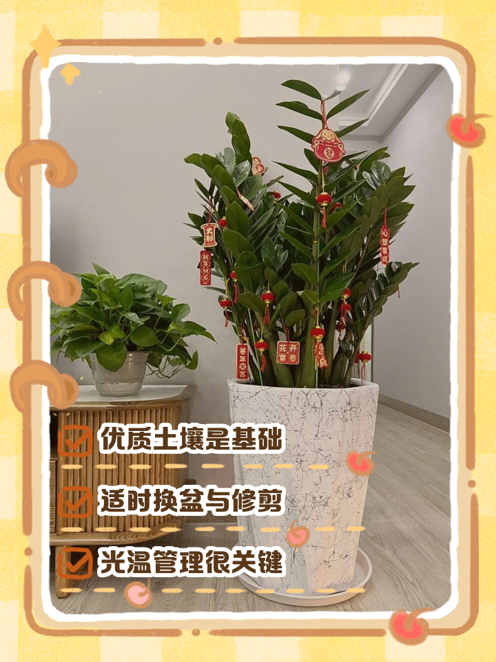 1土壤选择 盆土多用泥炭土粗沙与少量园土混合,使盆土呈微酸性状态因为金钱树其块茎硕大,且根系发达,所以要及时观察金钱树生长情况来决定是否换盆换土2浇水方式 金钱树因为枝叶可以贮存水,所以它的养护可以少浇水,在生长期保持盆土湿润偏干,不能有积水夏季经常向叶片喷洒水雾,保持空气。