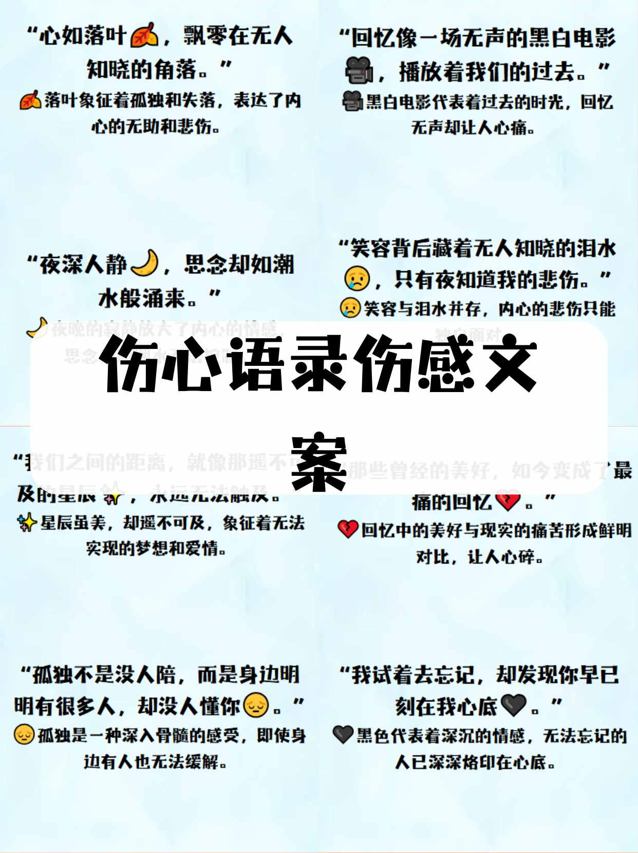以下是一些令人心痛到流泪的伤感句子心疼那个满怀心事却无人诉说,入夜只能枕着混着自己眼泪的枕头,连哭都不敢哭出声的自己这句话描绘了一个孤独无助的形象,将内心的痛苦和压抑表现得淋漓尽致我错过你的一点消息也觉得失落,而你错过我的一生大概都不感到可惜这句话通过对比,突显了一方对另一方的深情与另一方的冷漠,让人感受到深。