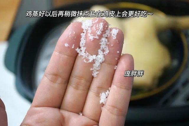 4. 出锅!蒸好以后,再抹点盐在鸡皮表面会更好吃!