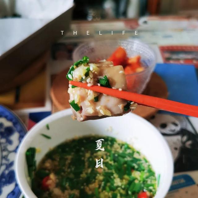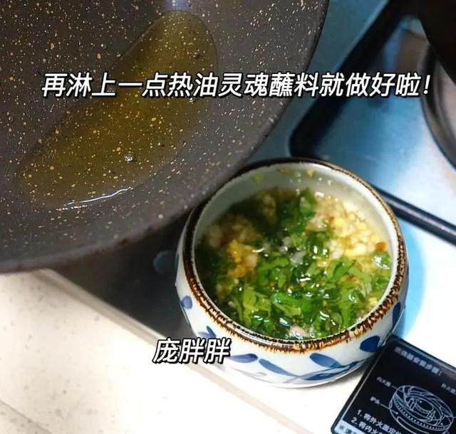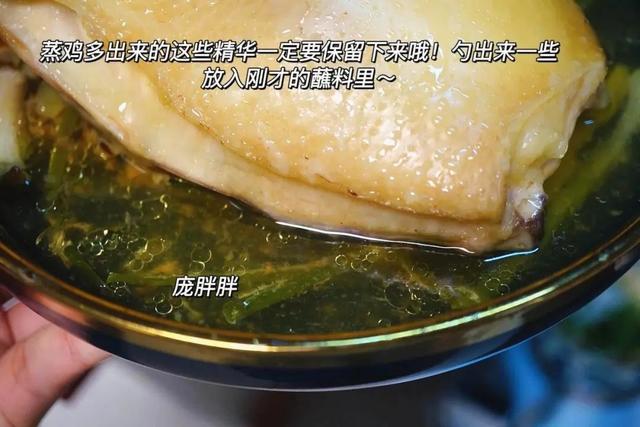 7. 然后把刚才蒸鸡多出来的鸡汁,舀一些放在配料里。再淋上一点热油就可以啦!蘸鸡吃超级美味的哦!