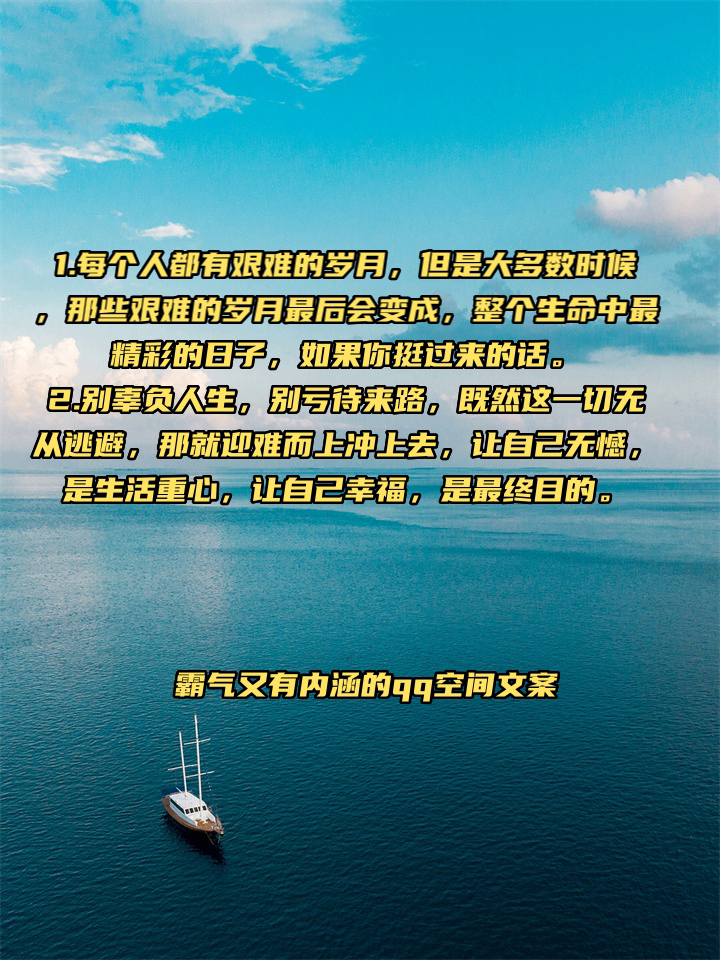 以下 14 条精辟句子,适合发在 空间,选一句去发说说吧你给自己一个高度,世界总会还你一个尺度这句话激励我们为自己设定目标,以积极的态度面对生活,当我们努力提升自己,达到一定高度时,世界也会以相应的方式给予我们回应无论你怎么做,都有人觉得你好或不好,所以,圈子不同,不必强融,请善待自己提醒我们。