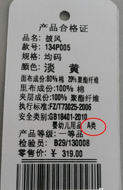 衣服吊牌上的A类B类C类是指纺织产品的安全级别A类定义A类服装专为婴幼儿设计,适用于年龄在36个月及以下的婴幼儿穿着的服装甲醛含量要求其甲醛含量不得超过20毫克每公斤,这是为了确保婴幼儿穿着时的健康安全适用场景由于婴幼儿的皮肤娇嫩且敏感,A类服装在面料选择染料使用以及生产。