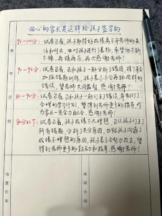 考试意见家长怎么签1看了这次考试的情况,对孩子的学习基本是满意的但需改掉粗心大意的老毛病有几个地方都是不应该出错的,就是粗心我们会配合老师把他的学习抓上去2考的好这一次考得较好,比上一次略有进步,谢谢老师的关心和栽培,我们家长一定会更加积极地配合老师的工作,督促她;学校的考试之后,通常需要家长在试卷上签字并给出评语以下是一些家长在试卷上可能写的签字意见,供您参考1 这次考试的成绩还算不错,希望孩子能继续努力在学校,他能遵守各项规定,尊敬师长,关爱同学,虚心学习,以优异的成绩回报老师和父母2 试卷已经看过,感谢老师们对孩子的日常培养孩子仍有许多需要努力的地方;1 家长签字评语希望孩子在学习和生活中保持积极态度,明辨是非,成为优秀的学生2 家长签字评语在期末考试中看到孩子的进步,鼓励其继续努力,总结经验,改进不足,保持良好心态3 家长签字评语感谢老师对孩子的指导,学校的平台使我们家长能及时了解孩子在学校的表现并与老师沟通4 家长签字;1试卷已阅,感谢教师平日对我孩子的培养,但是孩子还是有很多要努力的地方有劳老师以后继续费心教育孩子我们家长一定会鼎力支持,配合老师2希望我女儿虚心的学习,有特长之处加强学,不断上进,不足之处要加强学习,力争具有高尚的道德情操,良好的文化素养3希望孩子在学习和生活中,是积极的。
