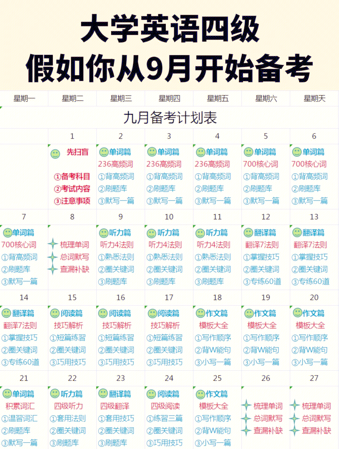但它在英语四级考试中仍然占据重要地位这部分不仅考察考生的词汇量和语法知识,还着重考察考生的阅读速度理解能力和推理判断能力考生需要在有限的时间内快速阅读文章,并准确回答相关问题综上所述,英语四级考试内容全面且富有挑战性,要求考生在英语听说读写四个方面都有较好的基础和表现;英语四级考试内容主要由五个模块构成,分别是听力理解阅读理解词句应用与语法结构完形填空以及短文写作听力理解部分占比重要,包括短篇新闻7%,长对话20%,和听力篇章20%,全面考察考生在不同语境下的听力理解能力阅读理解部分占比为35%,包括选词填空5%,长篇阅读10%,仔细阅读20%这部分旨在;英语四级考试内容主要包括写作听力和阅读理解三个部分写作英语四级考试的写作部分要求考生在30分钟内完成一篇100120字的英语短文写作题目有时是固定的,有时需要考生根据提示进行补充,这要求考生具备一定的英语表达能力和思维组织能力听力听力部分分为三个小节第一部分是新闻报道,通常包含几篇;英语四级考试主要考察以下内容1 听力理解 对话理解包括10组对话,每组对话后有一个问题,要求考生从四个选项中选择 短文理解包括若干篇短文,每篇后有二至四个问题,同样要求考生从四个选项中选择2 阅读理解 考生需阅读若干篇短文,总阅读量不超过1000词,每篇短文后有若干;英语四级考试的内容主要包括以下几个方面1 写作 要求在30分钟内完成考生需要在规定时间内写出一篇字数在之间的英语短文 题目形式多样题目有时是固定的,有时需要考生根据提示进行补充2 听力 分为三个部分第一部分是新闻报道,主要考察考生对新闻英语的理解能力第二部分是长对话。