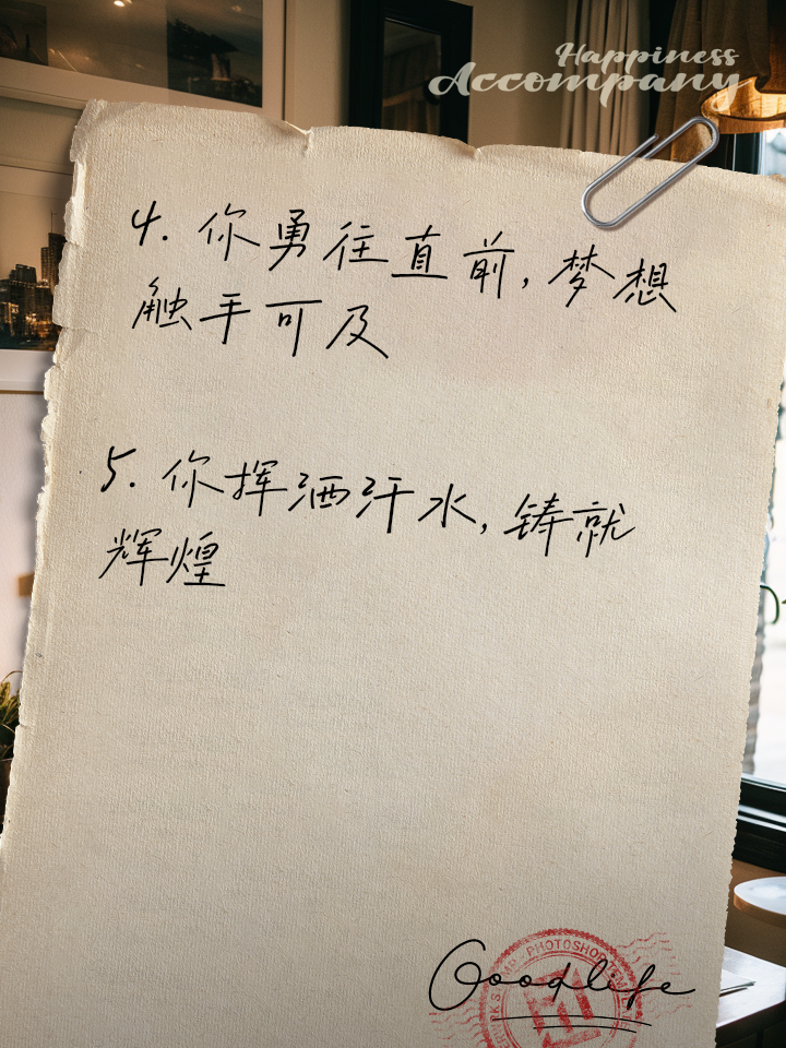 起点,也将是你们成功的终点,加油吧为了明天的辉煌,勇敢的向前冲6旭日从东方升起,我们从起点开始努力梦想的成功需要脚踏实地,和不懈的努力,加油,我们会一直拼搏在一起7用笑容召唤梦想 ,让生命创造荣誉,用努力创造奇迹,让勇气开拓天地相信自己,你们将创造一片属于自己的天地。