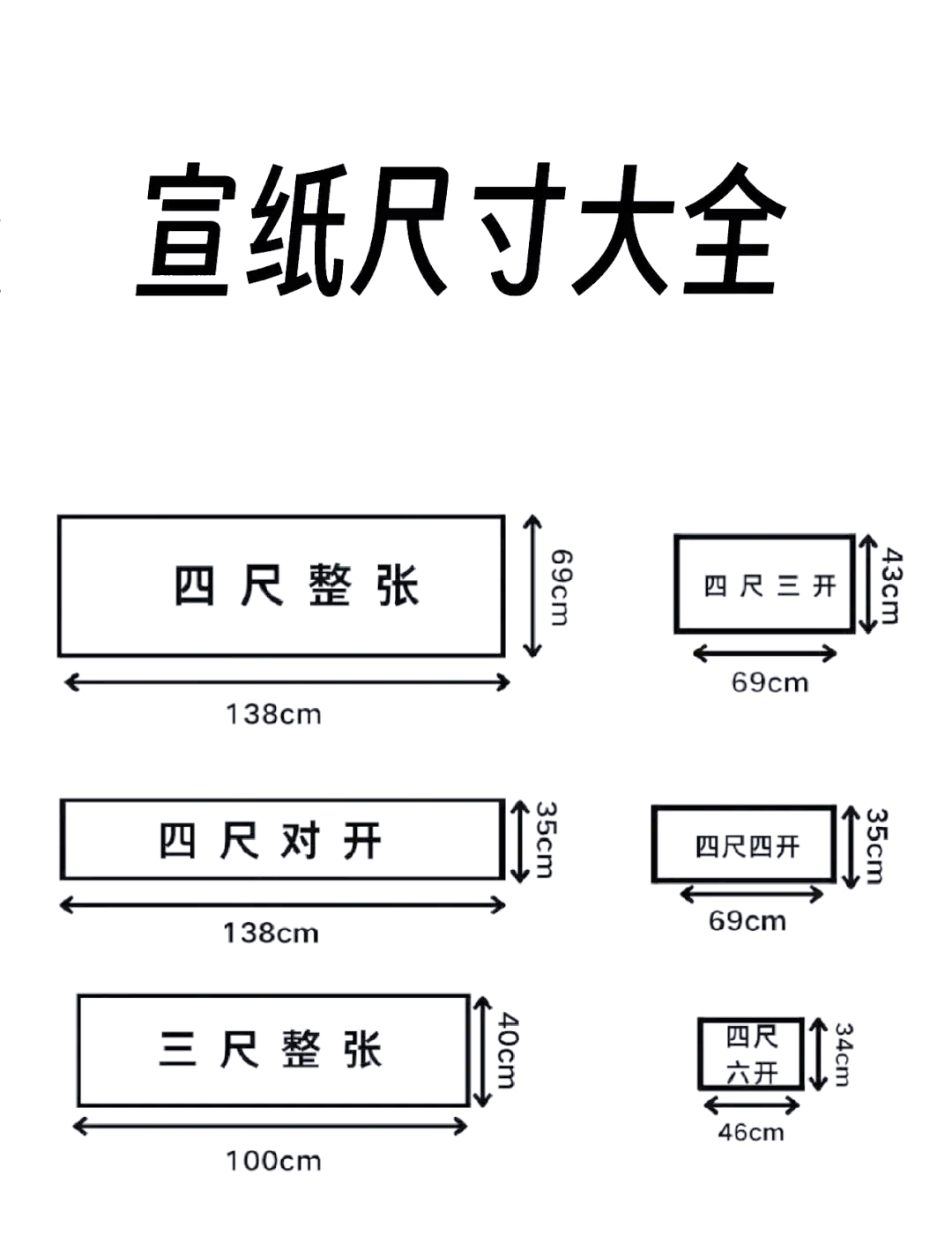 一四尺对开纸的尺寸为宽度138厘米,长度34厘米二四尺对开纸与四尺全开纸尺寸不同,四尺对开纸是四尺全开纸的一半三对开的意思是将纸张对折后展开,即二分之一的大小四提到宣纸的尺寸时,例如说几尺宣纸,是指宣纸的长度为几尺。