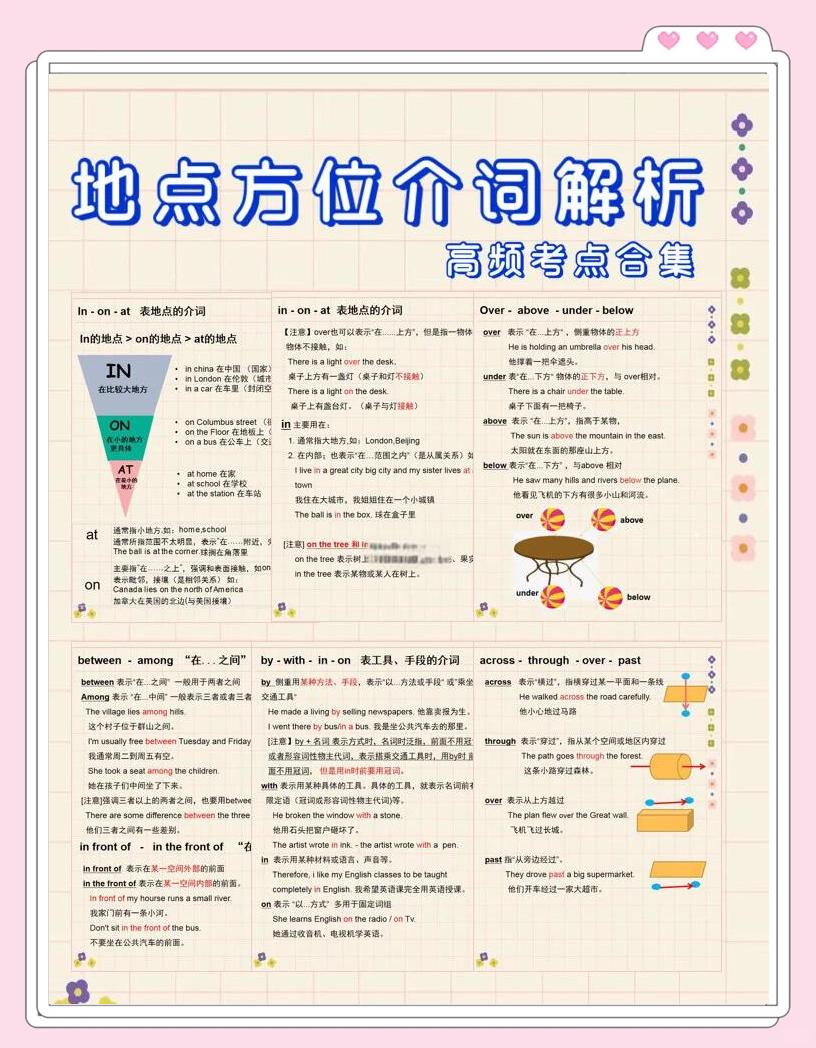上一讲,我们讲了形容词和副词这一讲我们来学学介词介词为虚词,不能单独充当句子成分,必须同名词代词短语句子构成介词短语,才能充当句子成分介词短语在句中常作表语定语状语和补足语介词的用法比较复杂,在英语学习中须多多注意 想看基础知识,请看介词下面我们来学点介词口诀。
