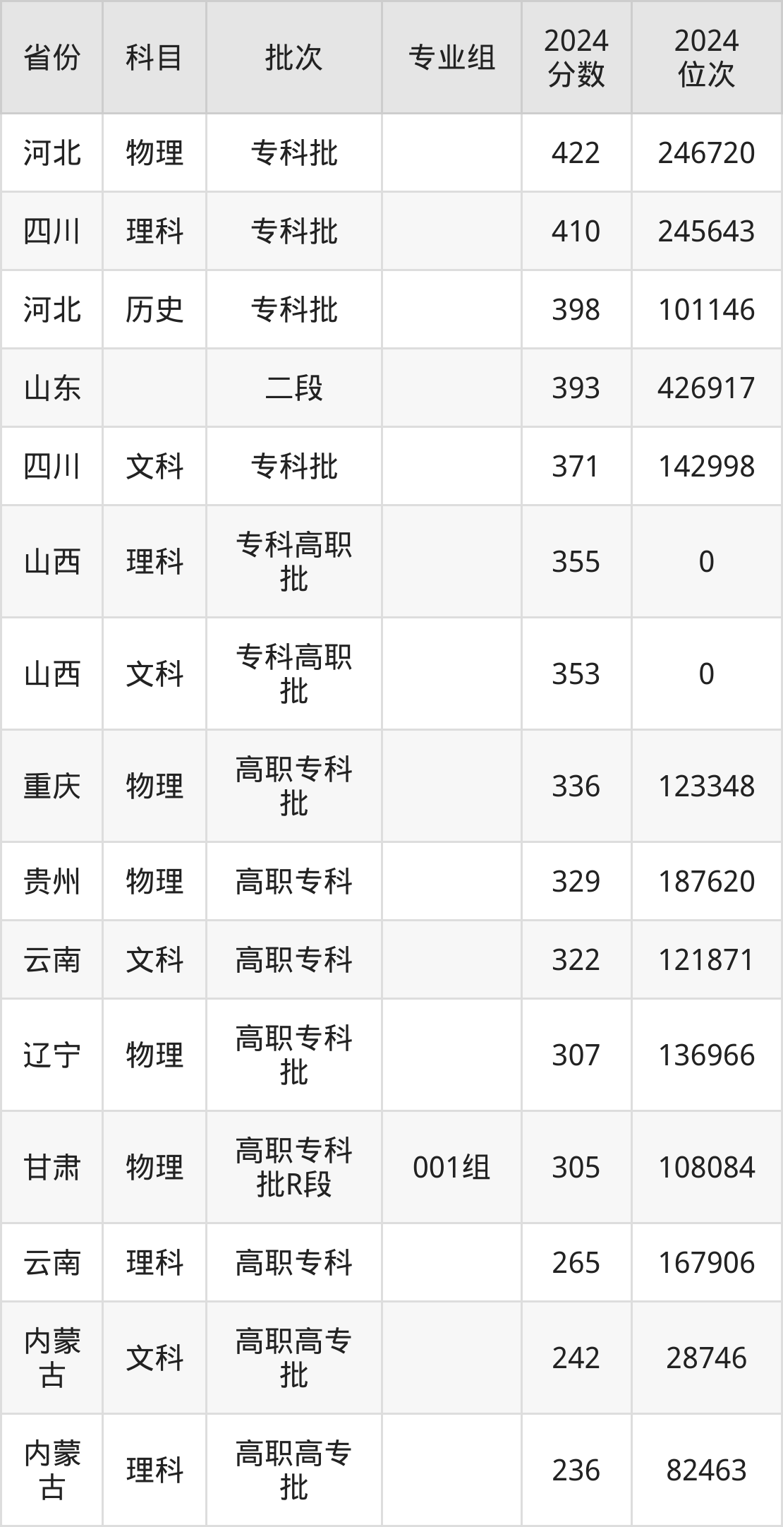 11、山西财贸职业技术学院全国第227名,财贸类专业实训体系完善此外,2024年文科全省公办专科平均最低线为198分,像山西工程科技职业大学等高分段院校达397分理科全省公办专科平均最低线为219分,山西省财政税务专科学校等热门院校分数线超350分需注意,排名依据校友会2025年高职专科榜单,不同机构排名。