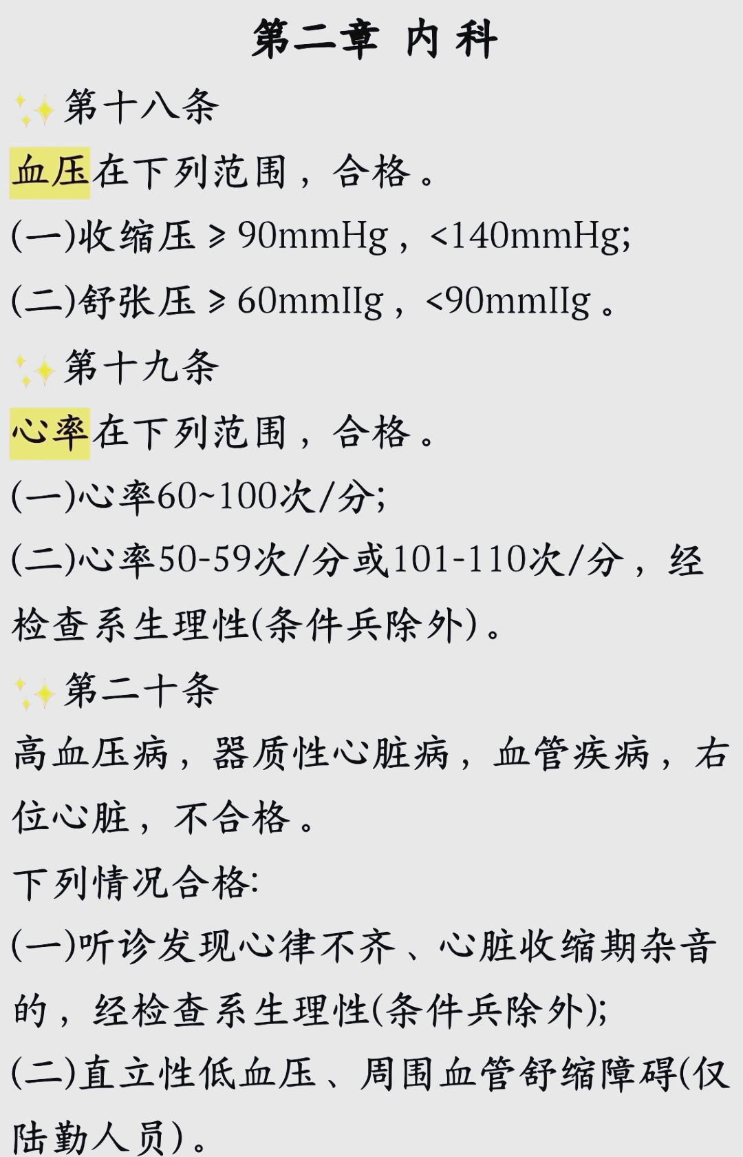 7、1 我国征兵体检标准要求男性身高不低于160厘米,女性不低于158厘米,以满足基本的身体条件2 体重方面,男性应征者的体重不应超过标准体重的30%,不低于标准体重的15%标准体重的计算公式为标准体重公斤= 身高厘米 1103 女性应征者的体重不应超过标准体重的20%,不低于标准体重的15。