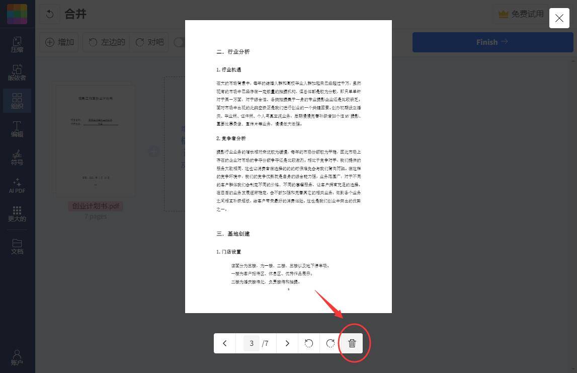 方法一单击需要删除的页面缩略图,页面上会显示三个操作图标,点击其中的“垃圾桶”图标方法二在上方工具栏中找到“删除页面”图标通常与缩略图中的垃圾桶图标一致,点击后确认删除通过右键菜单删除在缩略图模式下,右键单击需要删除的页面,从弹出的菜单中选择“删除”命令,系统会提示确认操作,点击“确定”即可完成。