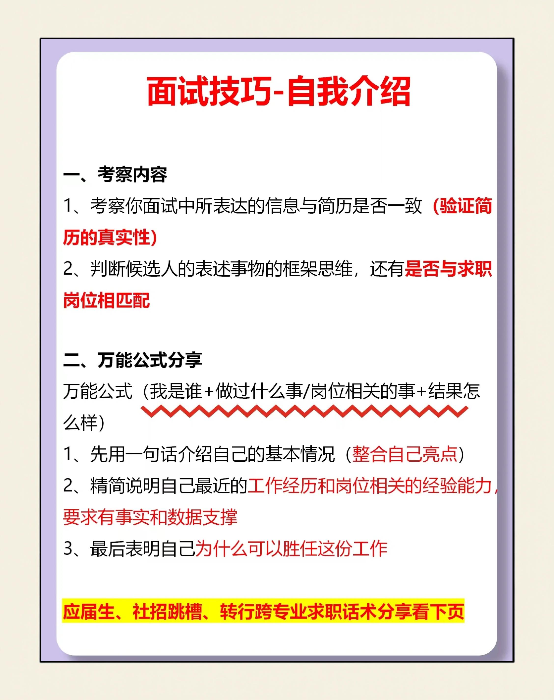 1、自我介绍 包括最 强的技能最深入研究的知识领域个性中最积极的部分做过的最成功的事主要的成就等,要突出积极的个性和做事的能力下面我给大家带来参加 面试 自我介绍万能,希望能帮助到大家! 参加面试自我介绍万能1 各位亲爱的学长学姐 你们好! 我是__班的___我很想很想加入学生会因为作为学;我的介绍完毕,非常感谢各位评委老师给予我这个展现的机会,谢谢! 面试自我介绍模板二 您好!我叫___,今年__岁,性格活泼,开朗自信,是一个不轻易服输的人 带着十分的真诚,怀着执着希望来参加贵单位的招聘,贵公司实力雄厚,重视人才,一直是我向往的地方 希望我的到来能给您带来惊喜,给我带来希望 在校期间;面试自我介绍3分钟范文三 各位面试官,大家早上好 首先,我很高兴今天能有机会在这里面试 首先,大概说一下我的性格我是一个比较随和的人,能很好的处理人跟人之间的关系对待我的本职工作,或者说答应了别人的事,我就会尽可能去做好,在我朋友们的眼中我是一个很值得信任的人,不过我自我理解的是我是;当到达一个新的环境后,我们总少不了要向他人介绍自己,自我介绍可以给陌生人留下一个好的印象自我介绍要好的话要怎么写?下面小编给大家带来简单大气的面试自我介绍精选10篇, 当到达一个新的环境后,我们总少不了要向他人介绍自己,自我介绍可以给陌生人留下一个好的印象自我介绍要好的话要怎么写?下面。