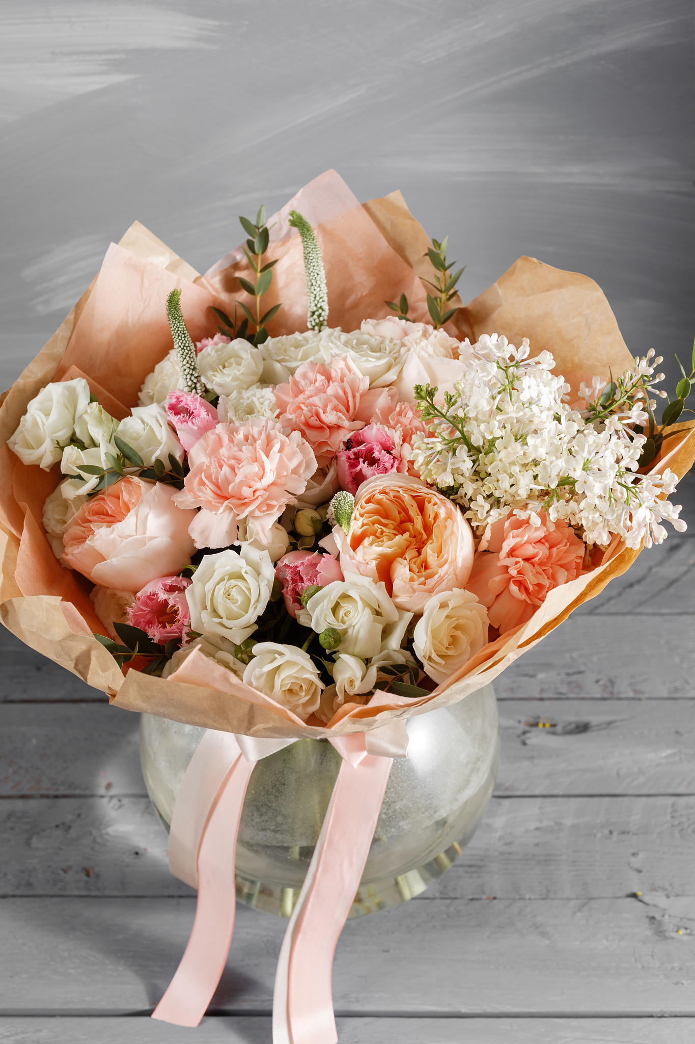 5、### 一根据闺蜜性格选花束 1 活泼开朗型闺蜜适合用向日葵+香槟玫瑰+尤加利叶的暖色调搭配向日葵象征阳光,搭配浅橙色玫瑰活力又不张扬,尤加利叶增添层次感,适合日常聚会或庆祝她升职加薪 2 温柔文艺型闺蜜推荐郁金香+喷泉草+雪柳花白色或浅粉郁金香干净优雅,喷泉草的灵动感叠加雪柳的。