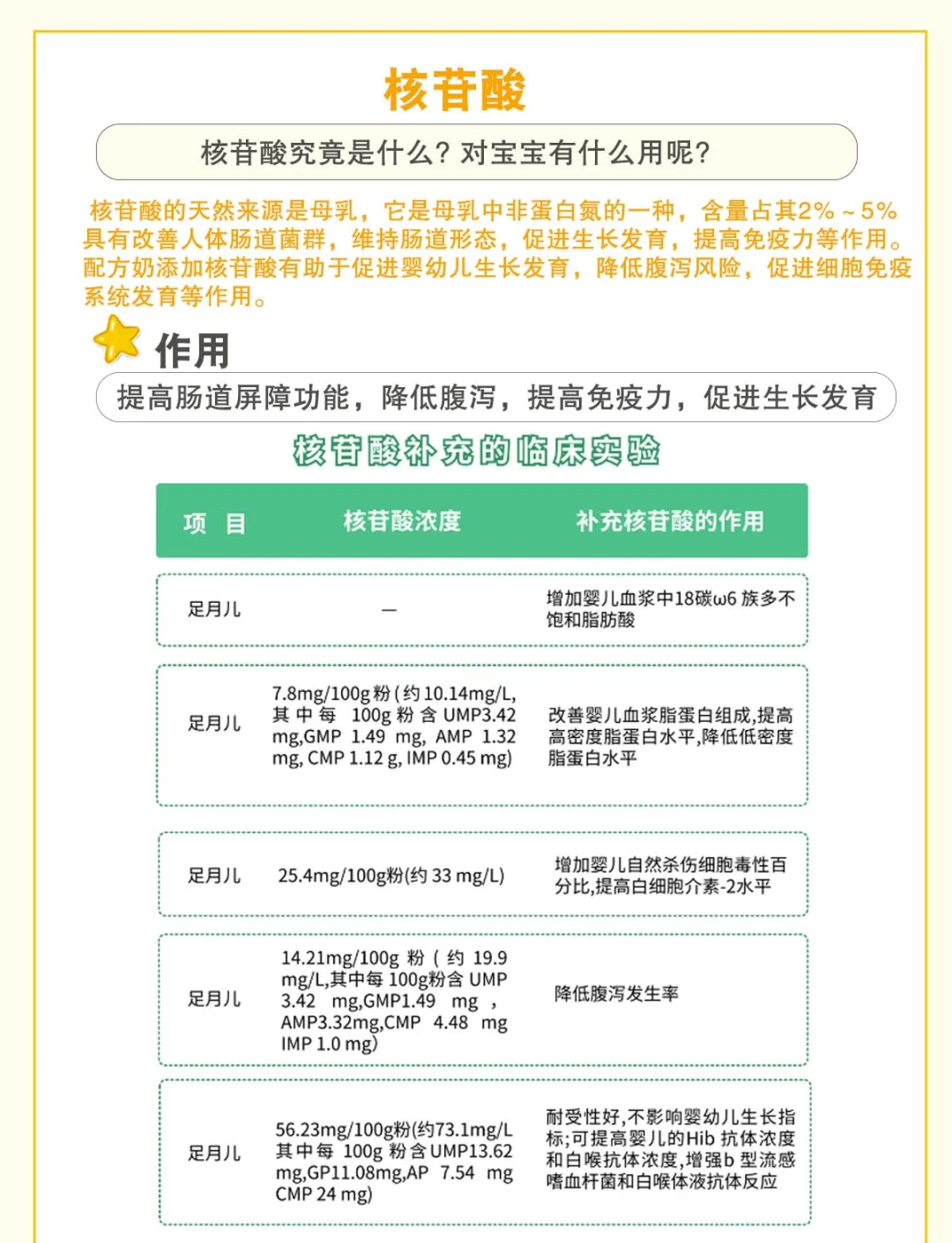 美素佳儿源悦奶粉中添加的核苷酸成分,经临床研究证实对婴幼儿呼吸道健康具有积极作用核苷酸作为母乳中的重要免疫活性物质,在配方奶粉中科学配比每100ml奶液含32mg12mg时能促进呼吸道黏膜细胞增殖修复,增强纤毛防御功能 提升婴儿血清中IgA抗体水平,强化呼吸道第一道免疫屏障 调节Th1Th2免疫。