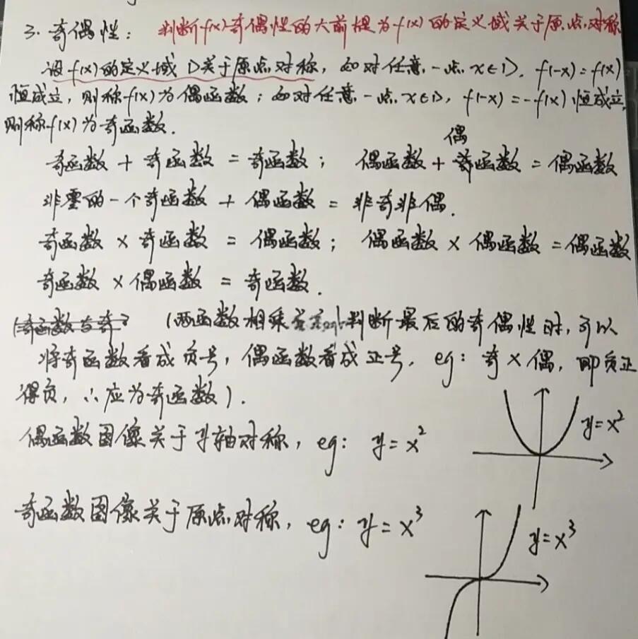 6、奇偶性加减乘除规律是奇函数加奇函数所得函数为奇函数,偶函数加偶函数所得函数是偶函数,偶函数加奇函数所得函数为非奇非偶函数奇函数减去奇函数所得为奇函数,偶函数减去偶函数所得为偶函数,奇函数减去偶函数所得为非奇非偶函数奇函数乘以奇函数所得函数为偶函数,奇函数乘以偶函数所得函数。