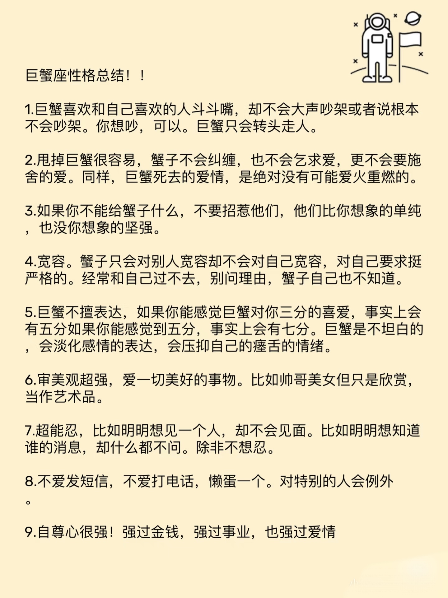 如果你想赢得巨蟹座男生的心,首先需要展现出宽容大度的一面,避免过于敏感和容易生气在行为上,大方得体比任何外表装饰都重要从本质上来说,巨蟹座更倾向于与那些善良纯真且容易相处的人交往他们喜欢的女生,往往不会过于精明,而是那种笨笨的无忧无虑的类型巨蟹座通常会自然而然地想要保护。