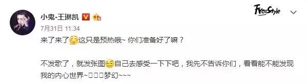 上个月月底第一次自己尝试写Rap唱给粉丝们听,这应该是在履行此前在粉丝见面会上给粉丝们的小承诺吧,等准备充足后会给粉丝们带来Rap首秀~
