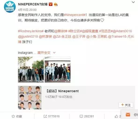 可以看到的是,九位少年的个人发展都在走着花路,但是对于百分九组合的发展,百分九女孩们却颇为担心,因为组合一直没有作品出来……