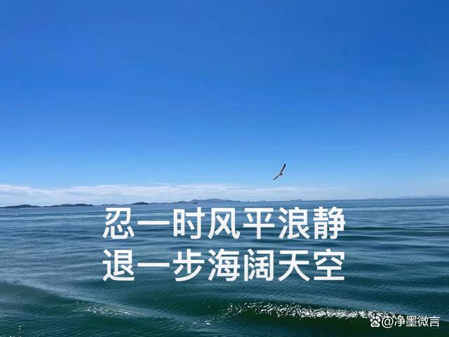 “忍一时风平浪静,退一步让三分心平气和”的下一句是“海阔天空”这句话整体为“忍一时风平浪静,退一步海阔天空让三分心平气和”,是一句富有哲理的谚语,具体解释如下忍一时风平浪静在面对矛盾和冲突时,如果能够稍微忍耐一下,不立即反应,那么事情往往会平息下来,不会变得过于激烈;“忍一时风平浪静”的下一句是“退一步海阔天空”,但更贴合原意的延伸表达为“欲进步需思退步”“退一步海阔天空”这是一句广为人知的谚语,与“忍一时风平浪静”并列,共同表达了忍耐和退让能够带来心境平和与避免冲突的智慧虽然“退一步海阔天空”并非直接出自增广贤文中对应“忍一时风平浪静”的下一句。