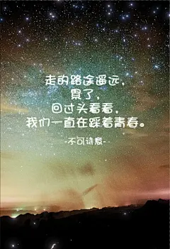 22想流泪的时候,抬头望一望天空,眼泪就不会流下来了 23也许爱情只是因为寂寞需要找一个人来爱即使没有任何结局 24夜,是一条河,沉睡的灵魂便如河底的卵石,脱去了白日的面具和盔甲,展露着光滑的肌体而失眠的人,便如河里的鱼,无法平和的心绪与无数白日的烦忧,纠缠地化作它身上层层的鳞而我。