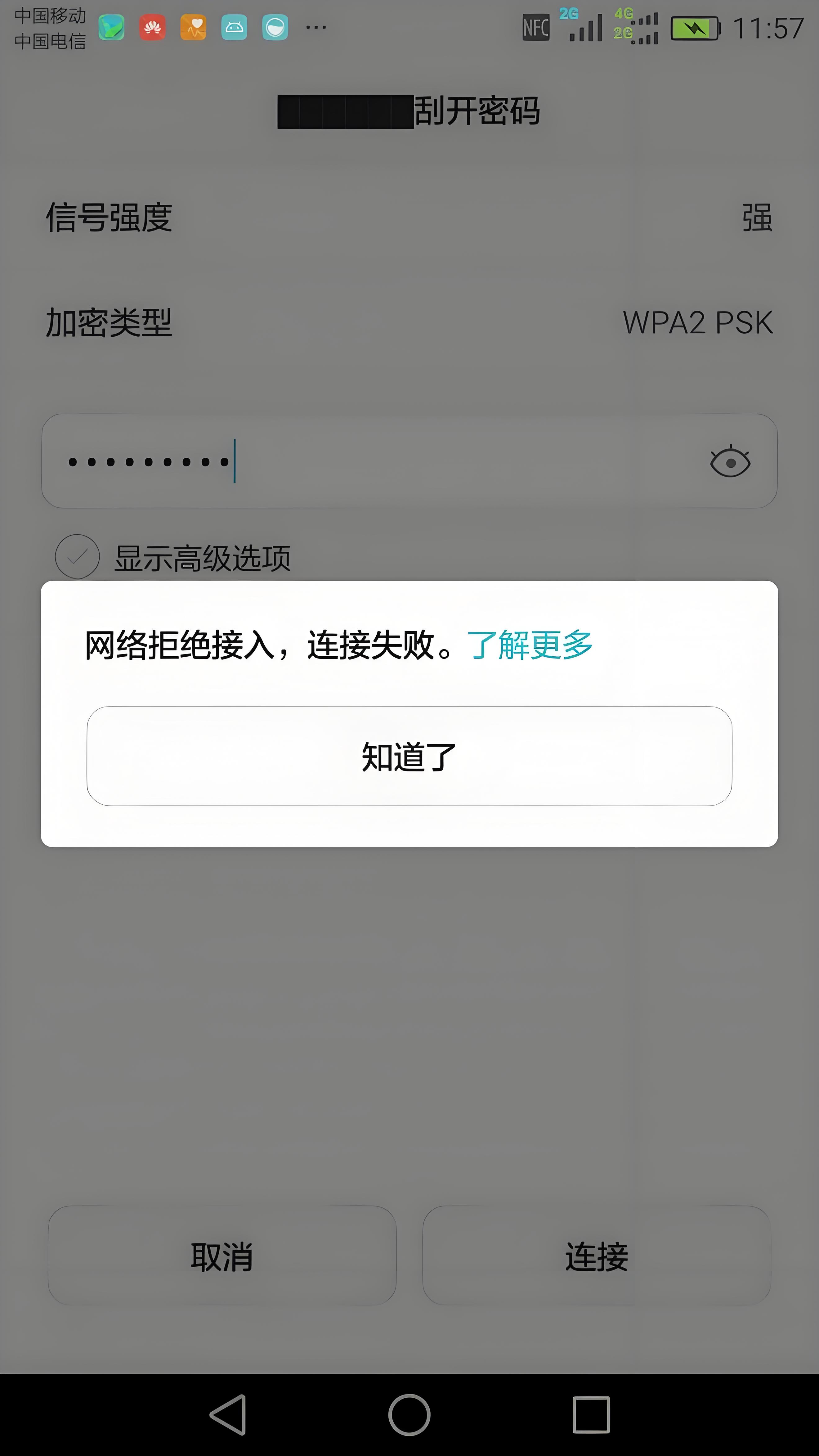 1打开WiFi后扫描不到无线网络,别人可以搜索到解决方法如下1WiFi信号被设置为隐藏,需联系网管获取无线信号名称后,在手机设置无线局域网其它网络,手动输入无线信号名称和密码连接2路由器故障,尝试重启路由器2提示连接WiFi被拒绝,故障现象别人能连上,自己连不上。