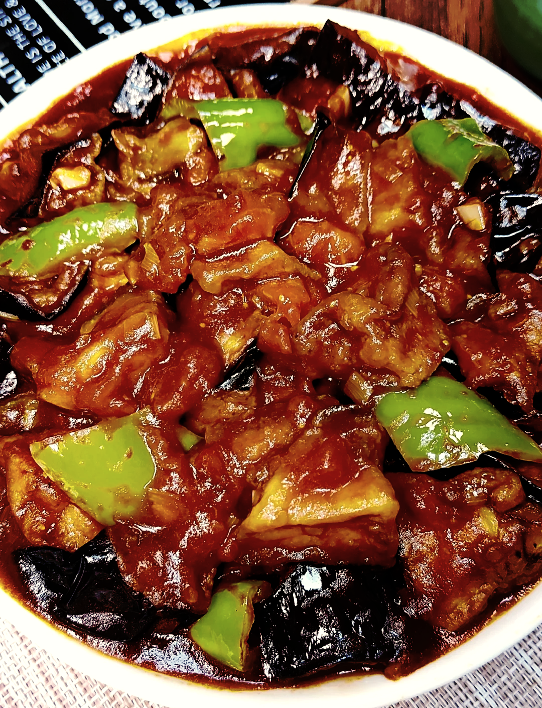 2、红烧茄子长茄版的做法如下食材准备 长茄四根猪颈背肉10克根据个人口味调整青椒一个香菜一棵姜蒜10克八角一个生抽少量老抽一滴白糖少量鸡精少量可选方法步骤 处理食材 长茄切小段后一分为四瓣,撒盐拌匀腌制10分钟逼出水分猪颈背肉切小块,姜蒜切片,青椒切。