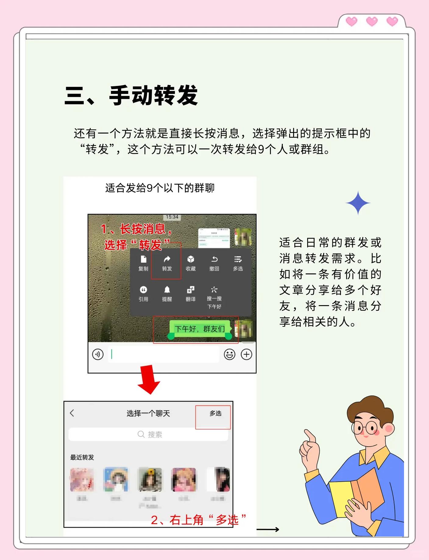 在中,若想不建群而私发消息给所有人,可按照以下步骤操作步骤一发送初始消息打开手机,选择任意一位好友,向其发送一条消息内容可为祝福语或其他需群发的内容步骤二进入转发模式长按已发送的消息,在弹出的菜单中选择“转发”选项步骤三开启多选模式进入消息转发页面后,点击页面右。