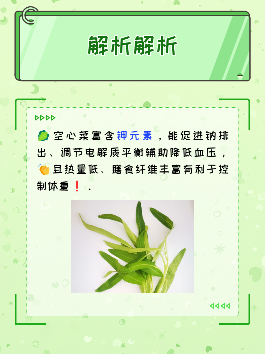 首先,空心菜是一种低脂低热量的蔬菜,经常食用不仅不会导致肥胖,还能有效抑制脂肪的吸收,从而达到减肥的效果此外,它含有丰富的烟酸和维生素C,这些物质有助于降低血液中的胆固醇含量,对于血脂较高的患者来说,是一个不错的选择但需要注意的是,在食用空心菜的同时,应适当减少肉类食物的摄入,以确;体质虚弱脾胃虚寒大便溏泄者不宜多食因为空心菜性寒,这类人群食用后可能会加重症状肾功能不全高钾血症患者适量服用空心菜含钾丰富,这类患者需要控制钾的摄入量忌煮太久最好大火快炒,这样可以避免营养成分的流失空心菜的功效主要包括排毒通便空心菜的粗纤维素能够促进肠道蠕动。