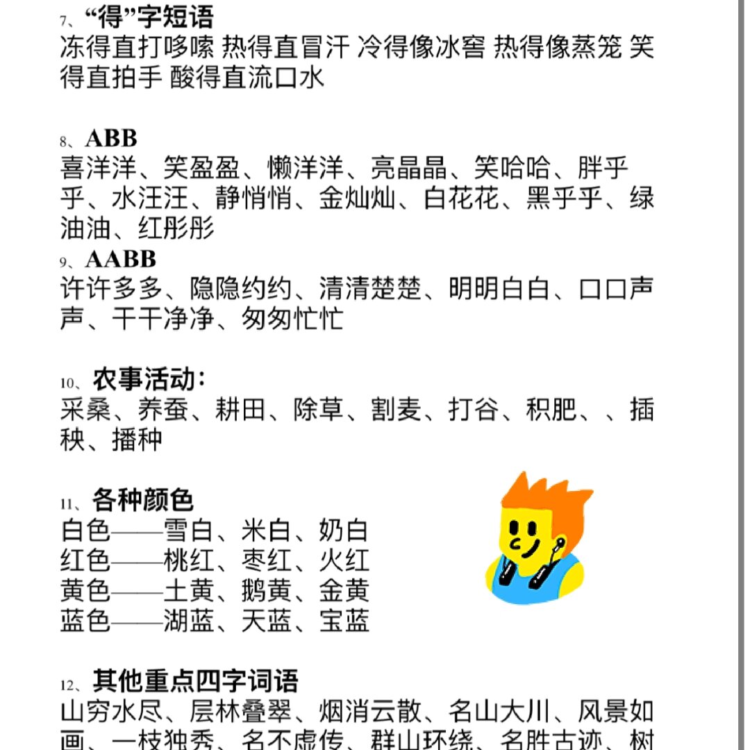 4、1冷得像冰一样2冷得像刺骨寒风3冷得像寒冬一样4冷得像冰块5冷得像冰窖选词填空主要考察的是孩子对于生字词的理解与运用,这里有两种比较实用的方法一是辨析词义,辨明关系,辨析词义是解答选词填空题的前提二是联系语境,寻找“暗示”,这里所说的“。