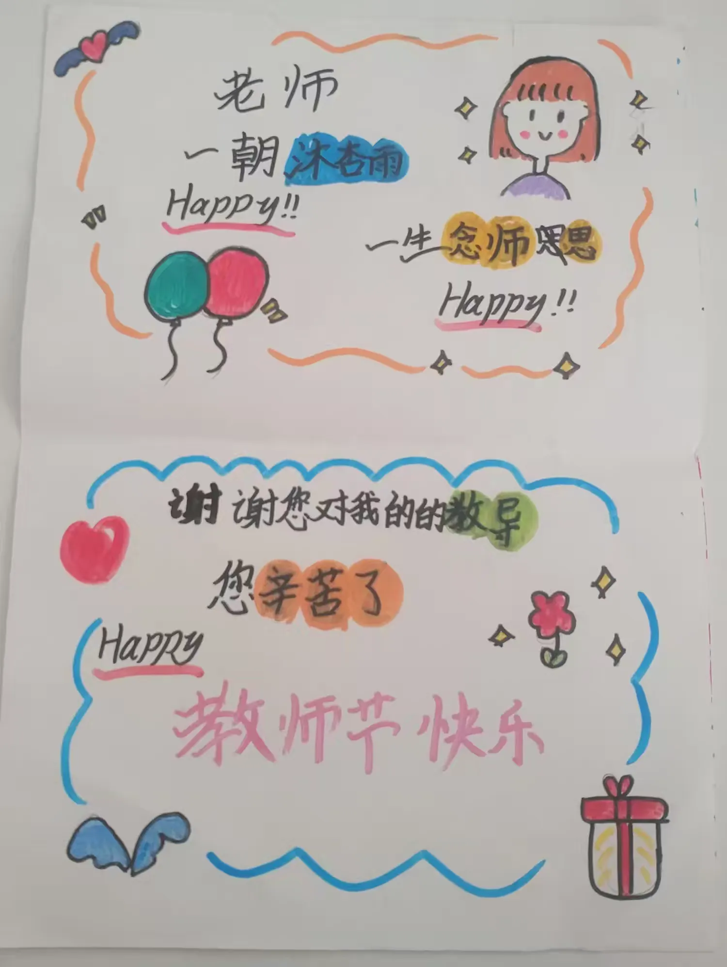 3、一按语言风格分类 1 通用暖心版 “老师,祝您教师节快乐谢谢您用生动的课堂带我们走进英语世界,记得第一次听懂英文歌时特别骄傲希望您每天都像读课文里的happy ending一样开心” 2 活泼创意版 “Dear Teacher,Happy Teachers’ Day您不是‘walking dictionary’,但您让每;英语教师节简单祝福语 Dear teacher, happy Teacherrsquos Day! Thank you for your hard work and dedication 敬爱的老师,教师节快乐感谢您的辛勤工作和奉献 Wishing you a wonderful Teacherrsquos Day, filled with joy and apprec;一教师节英文祝福语有1 Our beloved teacher, you are the spring shower that moistens our hearts The love and care you have given us will encourage us to go through a long and arduous journey亲爱的老师,您就象那春天的细雨,滋润着我们的心田您给予我们的爱和关怀将鼓舞着。