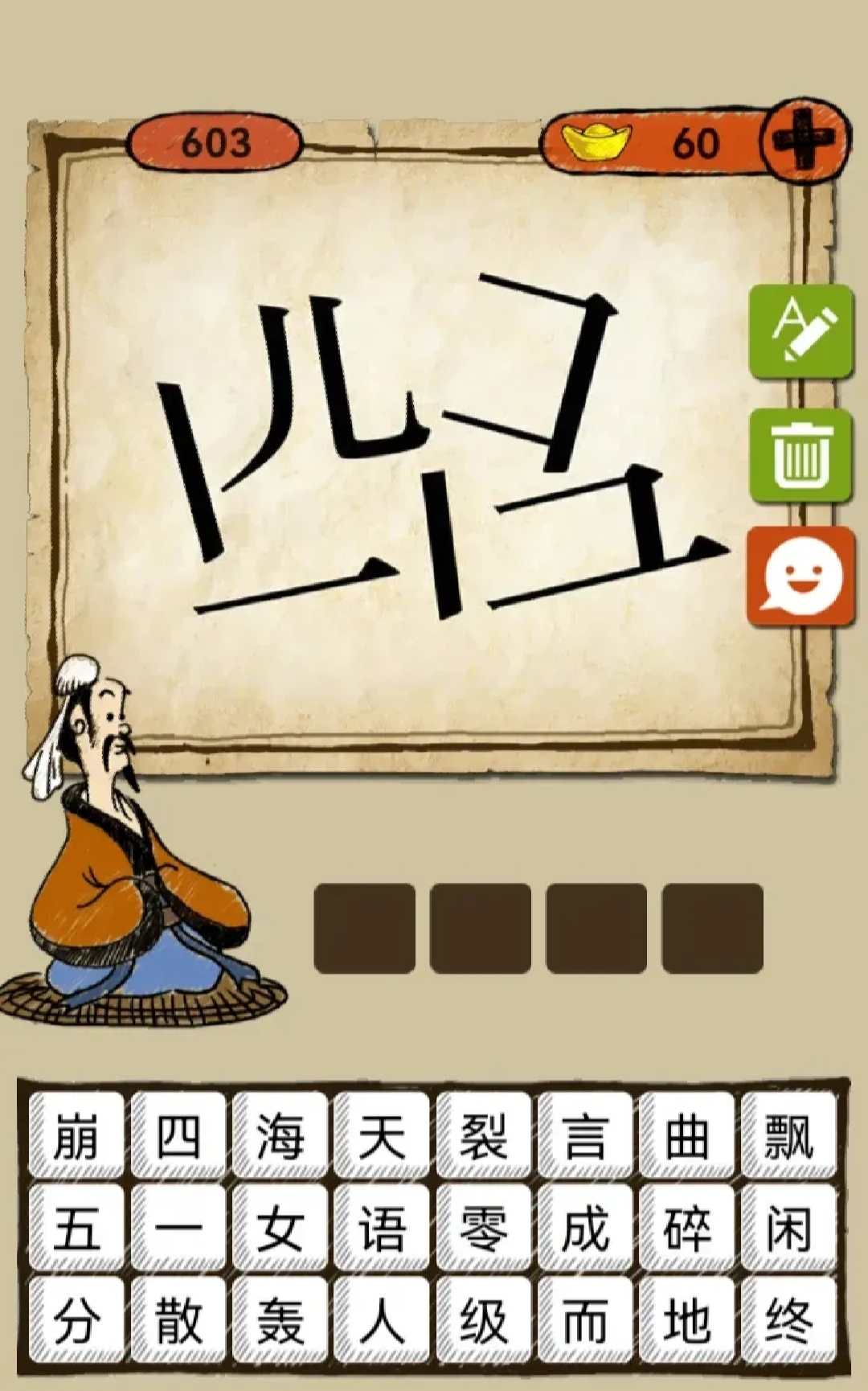3、游戏介绍休闲的游戏,丰富的游戏题库,设计也十分出彩,还根据玩家的答题等级有对应的难度适配,方便玩家进行游玩,还有实时更新的题库系统,让玩家每天感觉不一样成语天地游戏亮点提供有多种趣味玩法模式,猜成语,成语接龙,看图猜成语,成语填空等等,同时随着你闯关的深入,烧脑程度也会逐渐的提升,挑战;胆大包天 解释包包容形容胆子极大出自清·杨潮观吟风阁杂剧·黄石婆授计逃关“因此上胆大包天,一铁锺,几乎把秦王断送”;3 看图猜成语一个天字里面有个小的天字是什么成语 天外有天道家术语指某一境界之外更有无穷无尽的境界 多用来表示人的眼界受客观条件的限制,认识的领域需要不断扩大也表示美好的境界阅历不尽 亦作“山外有山”“峰外有峰”成语成语发音 tiān wài yǒu tiān成语出处白玉蟾“昨夜遇神仙,指示。