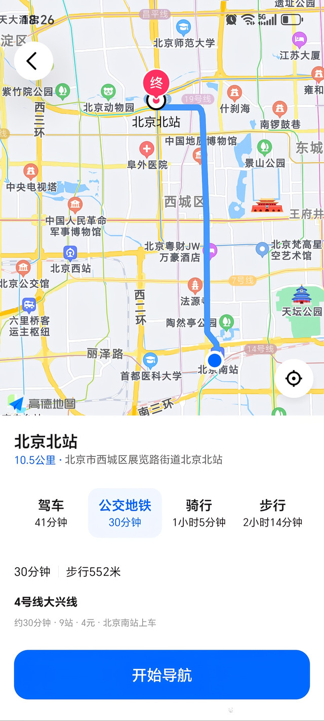 1 地铁您可以从北京站乘坐地铁2号线,经过4站后在西直门站换乘地铁4号线,再经过3站即可到达北京西站整个行程大约需要30分钟,票价为3元2 公交特8路公交车是直接到达北京西站的路线,全程大约需要40分钟,票价为2元3 出租车乘坐出租车从北京站到北京西站全程大约需要20分钟,车费大约;从北京西站到北京站乘坐地铁的路线如下首先,在北京西站乘坐地铁7号线 路线说明乘坐地铁7号线,经过8站,到达磁器口站其次,在磁器口站换乘地铁5号线 换乘说明在磁器口站下车后,根据站内指示牌换乘地铁5号线,经过1站,到达崇文门站最后,从崇文门站步行至北京站 步行说明从崇文门;2 乘坐北京站北京西站接驳线公交车,经过2站,到达北京站3 步行约50米,即可到达北京站地铁线路全程约107公里1 从北京西站乘坐地铁7号线,经过4站,到达菜市口站2 步行约50米,换乘地铁4号线大兴线3 乘坐地铁4号线大兴线,经过1站,到达宣武门站4 乘坐地铁2号线;从北京西站到北京站坐地铁的路线如下出发站点从北京西站地铁站出发,根据站内指示牌进入地铁站乘坐7号线乘坐地铁7号线的列车换乘2号线在磁器口站下车后,根据站内指示牌换乘地铁2号线抵达北京站乘坐地铁2号线,并在北京站地铁站下车,根据站内指示出站即可到达北京火车站注意事项;从北京西站至北京站,距离大约9公里乘坐出租车大约需要26至30元此外,有多条公交线路可供选择,包括9路52路673路和特2路等如果您选择公交出行,可以乘坐这些线路直达北京站另外,您也可以选择乘坐地铁,从北京西站向北步行约20分钟到达军事博物馆站,然后乘坐地铁前往北京站;从北京西站到北京站最快的走法主要有以下几种打车距离约7公里耗时约31分钟花费约32元优点直接快速,无需换乘地铁方案一路线乘坐地铁7号线北京西站环球度假区方向至菜市口站,换乘地铁4号线大兴线安河桥北方向至宣武门站,再换乘地铁2号线外环至北京站耗时总耗时约253;题主是否想询问“北京西站到北京站怎么去”,可以选择驾车或是乘地铁1根据百度地图查询得知,北京西站到北京站驾车耗时约42分钟,全程约104公里,途径18个红绿灯,打车约32元,途经莲花池东路宣武门西大街2还可以选择乘地铁,耗时约33分钟,在北京西站上车乘坐地铁7号线,票价4元,在菜。
