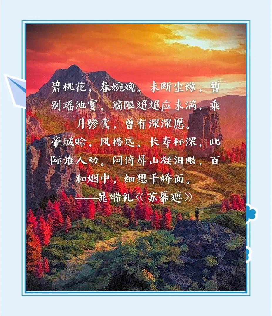 在这样的季节里,诗人独自一人,面对着远方的山水和无尽的思念他渴望回到故乡,却又不得不留在异乡每当夜幕降临,孤独和思念如同潮水般涌来,只能借酒浇愁,化作一滴滴相思之泪这首苏幕遮不仅描绘了秋天的美景,更表达了诗人深深的思乡之情和旅居的苦闷每一个字,每一句,都透露出诗人内心。