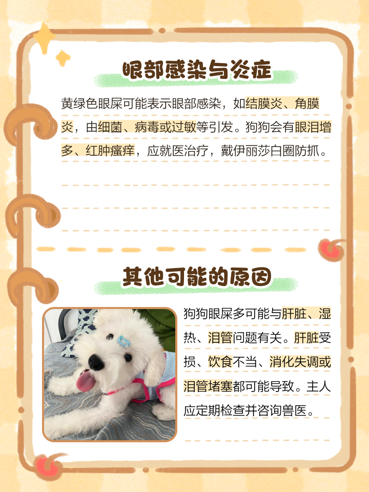 12、一生理性原因正常代谢产物 睡眠时泪液分泌减少,脱落的眼表细胞油脂和灰尘混合形成白色或淡黄色分泌物,晨起时较明显此类眼屎通常干燥量少,且无红肿或频繁抓挠短鼻犬种如巴哥犬斗牛犬因鼻泪管结构特殊,更易出现分泌物堆积环境刺激 粉尘烟雾或空调风直吹可能刺激泪液分泌增多,导致。